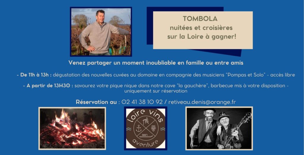 Le Domaine des Champs fleuris vous accueille les 8 et 9 mai pour ses portes ouvertes annuelles. La dégustation de nos nouvelles cuvées aura lieu au Domaine entre 11h et 13h dans une ambiance festive en compagnie de pompas et solo (accès libre). Si vous souhaitez prolonger ce moment de convivialité en famille ou entre amis, n'oubliez pas de réserver pour votre repas à la cave à partir de 13h30 (Uniquement sur réservation) emmener votre pique-nique, un barbecue sera mis à disposition.